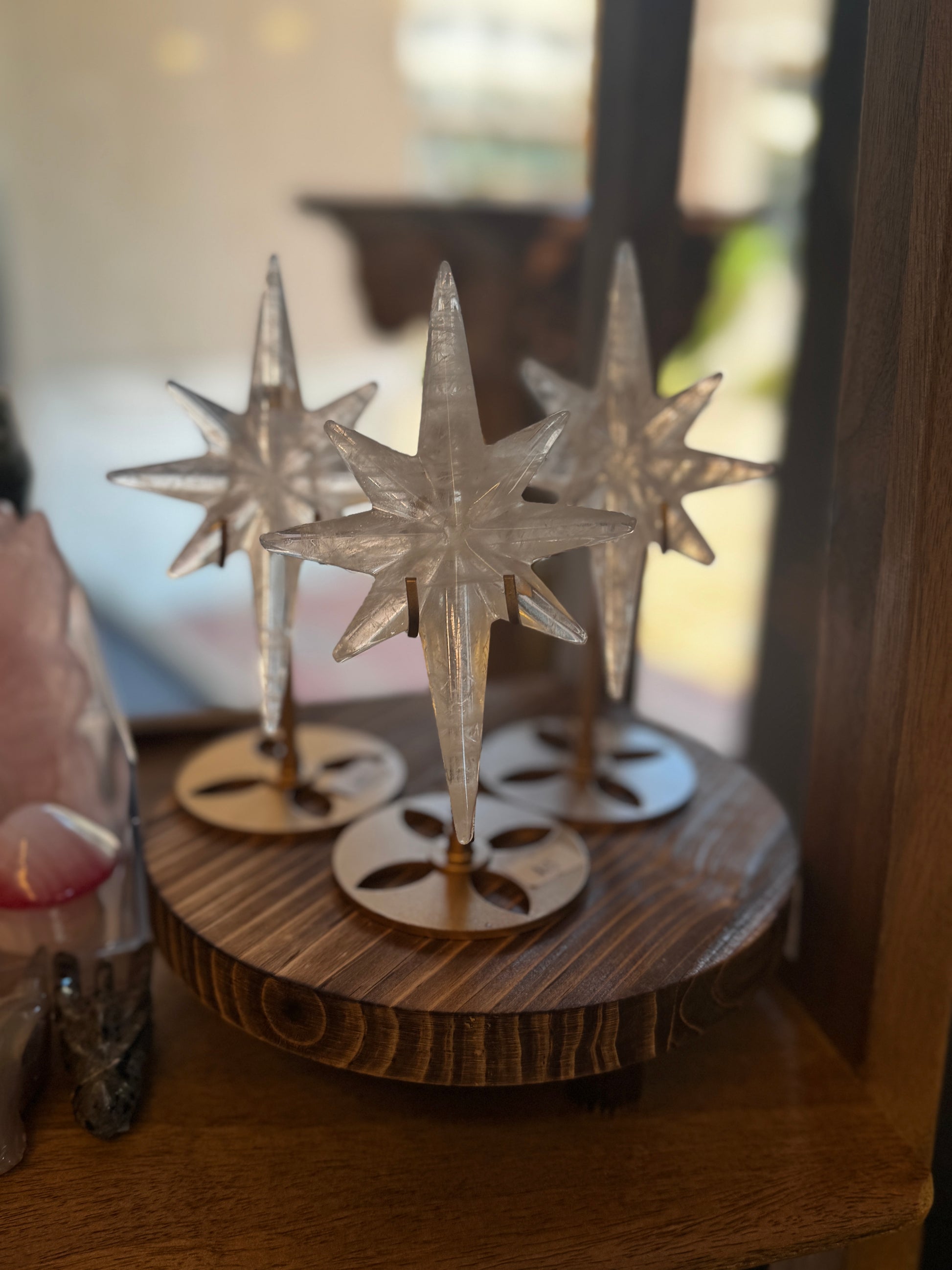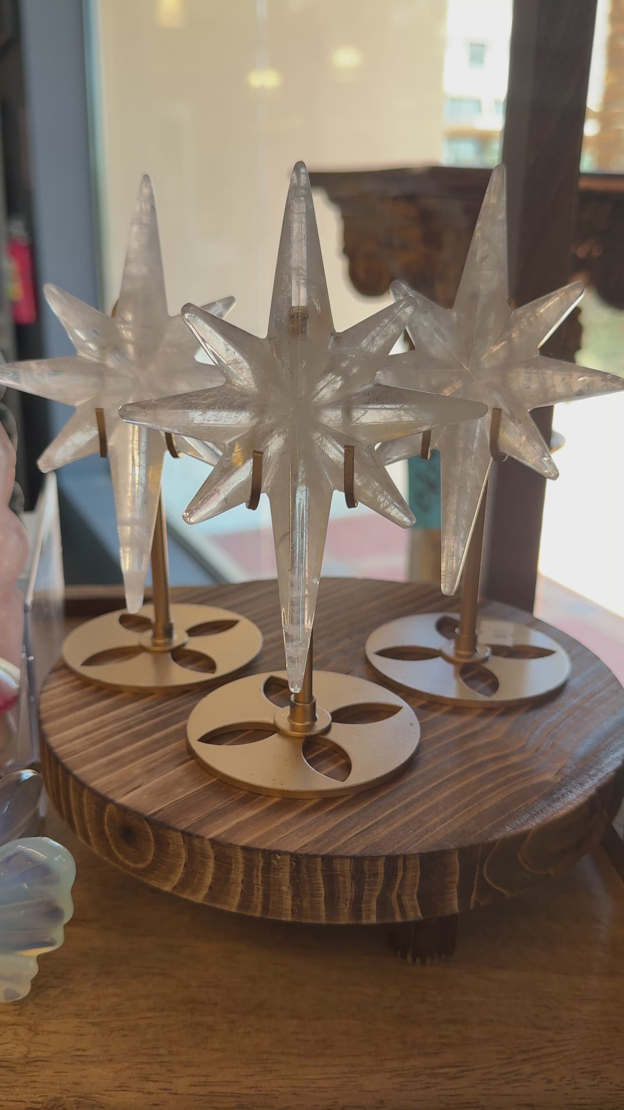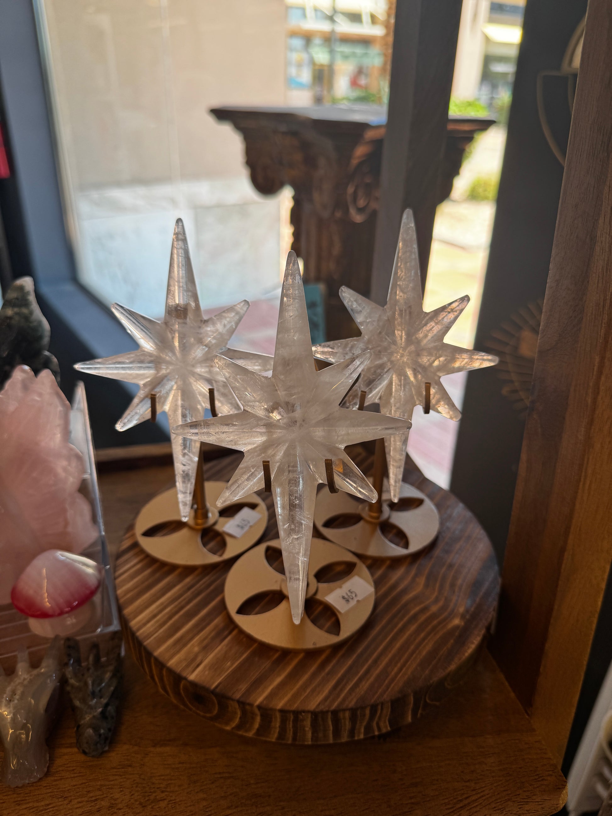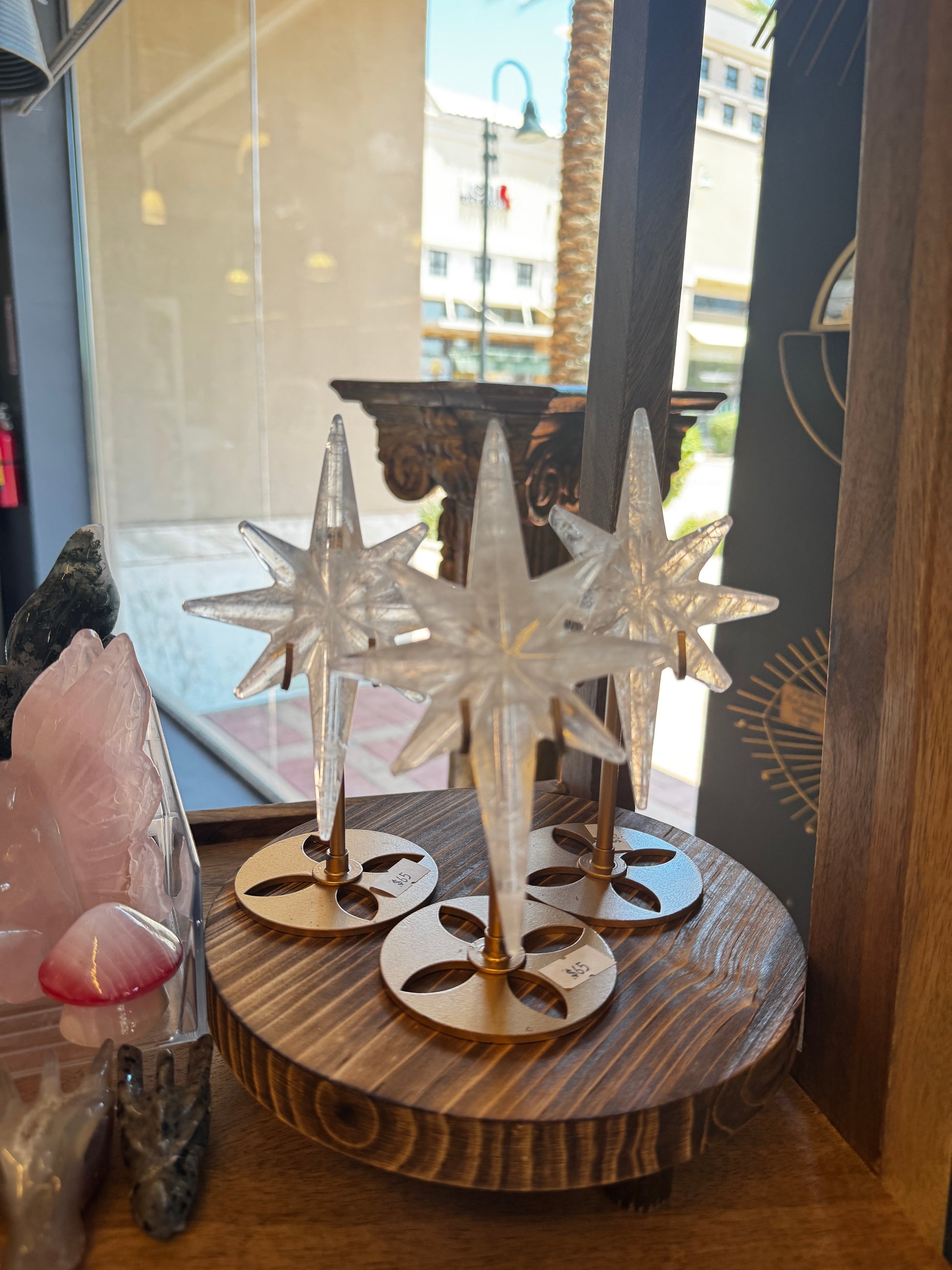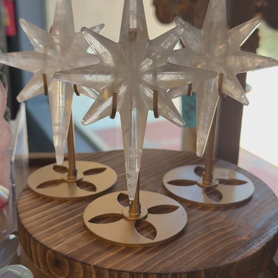 take home a little piece of the city of starlight with one of these beautiful clear quartz stars on gold stands.